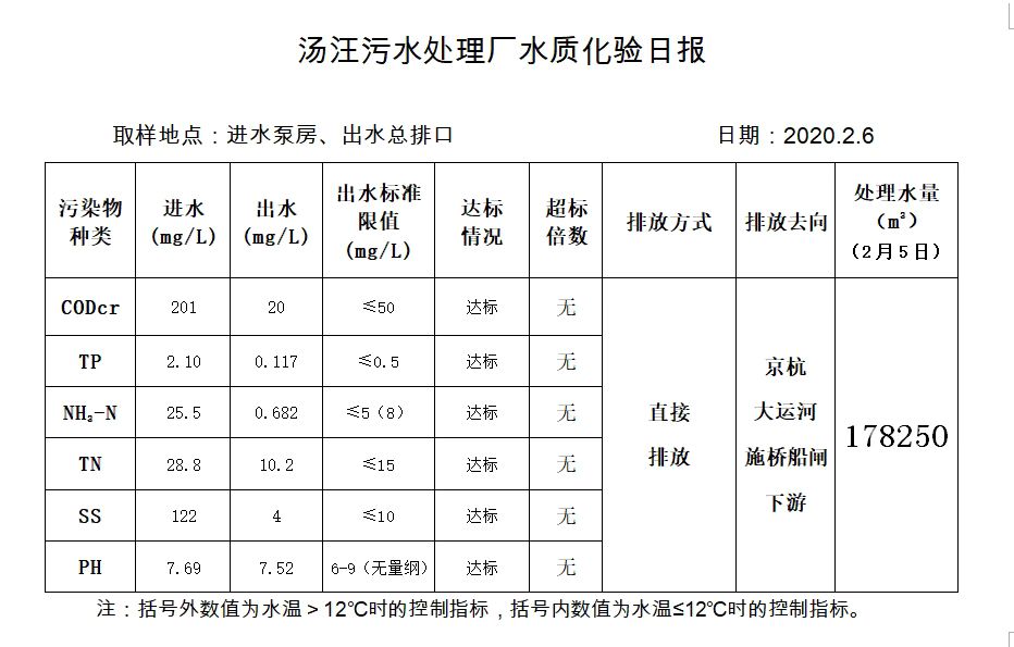 汤汪污水处理厂水质化验日报(2020.2.6)