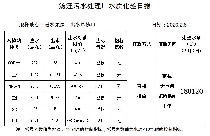 汤汪污水处理厂水质化验日报(2020.2.8)