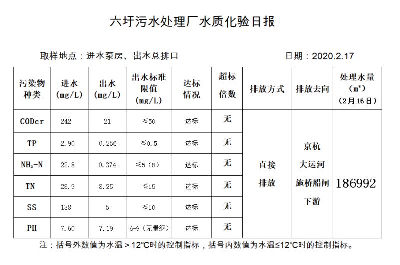 六圩污水处理厂水质化验日报(2020.2.17)