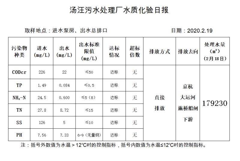 汤汪污水处理厂水质化验日报(2020.2.19)