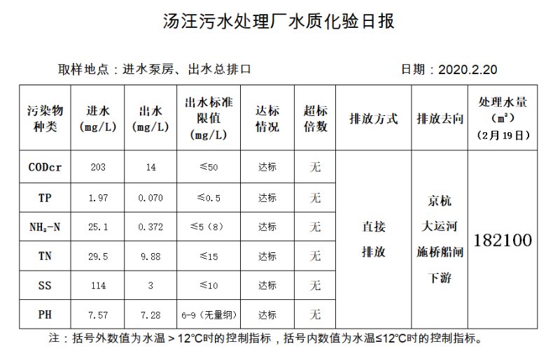 汤汪污水处理厂水质化验日报(2020.2.20)