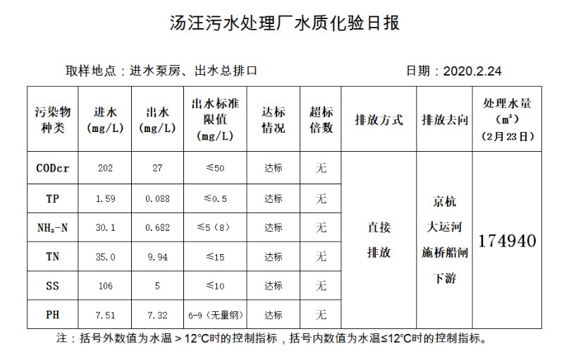 汤汪污水处理厂水质化验日报(2020.2.24)