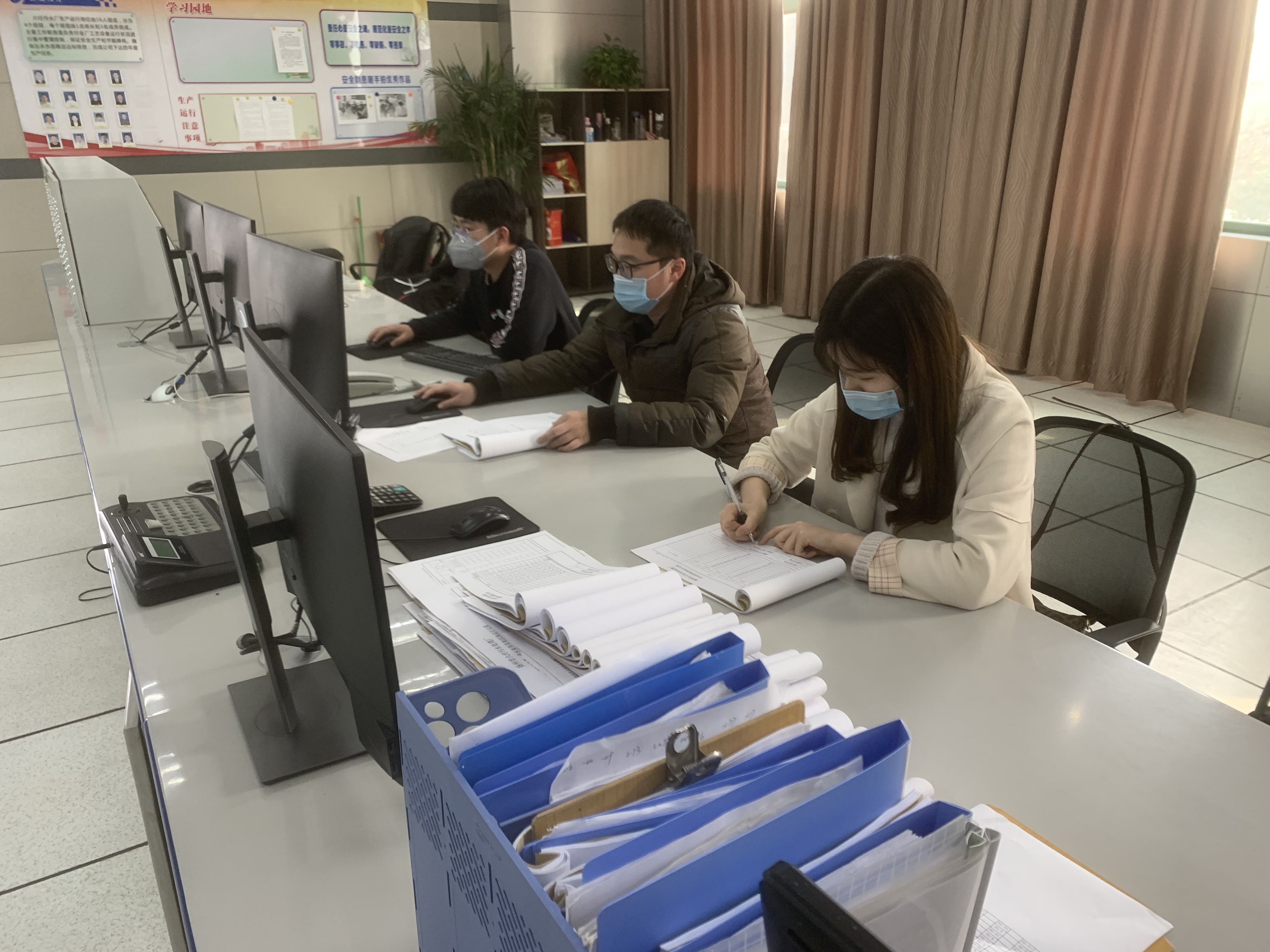 二、落实各项防疫措施。严格实行测量体温和进出登记制度;对职工健康状况、出行情况等每日进行汇总统计;积极筹措各类防疫物资,满足疫情防控需要;动态跟踪职工个人健康情况;要求职工上班期间必带口罩,不得串岗、扎堆,人员保持1米以上距离;加强设备设施和办公场所消毒,其中会议室、大厅、卫生间等公共场所每日消毒2次;生产岗位人员必须佩戴口罩和一次性手套,取消对进水水样的采样,不直接与进水和污泥接触。