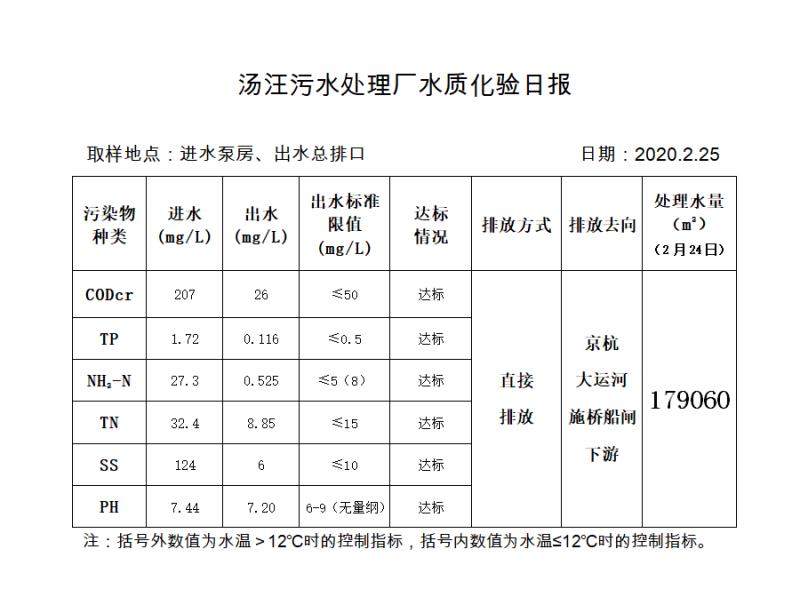 汤汪污水处理厂水质化验日报(2020.2.25)