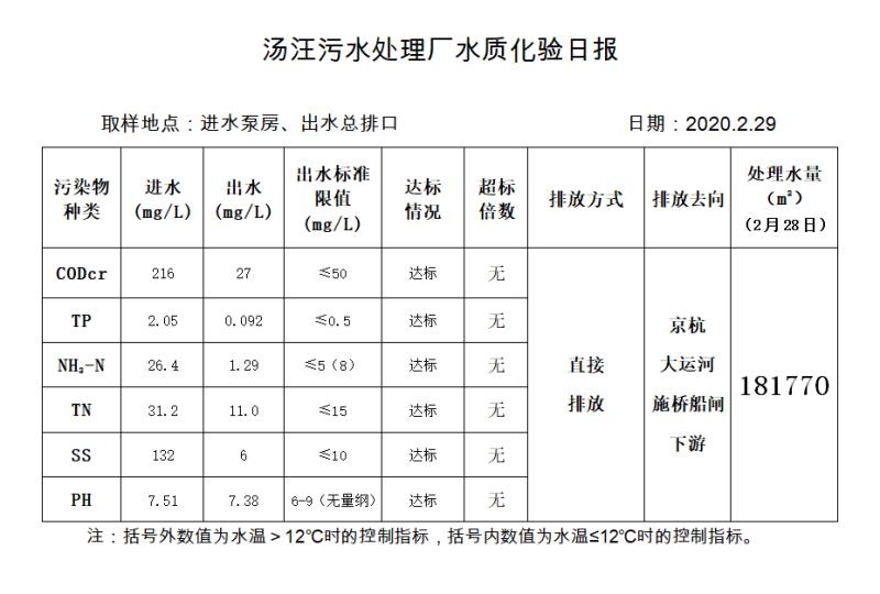 汤汪污水处理厂水质化验日报(2020.2.29)