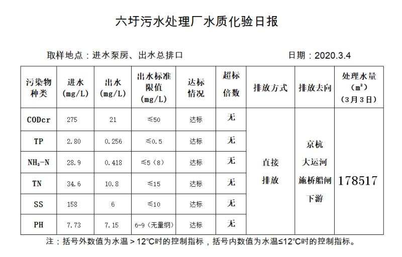 六圩污水处理厂水质化验日报(2020.3.4)