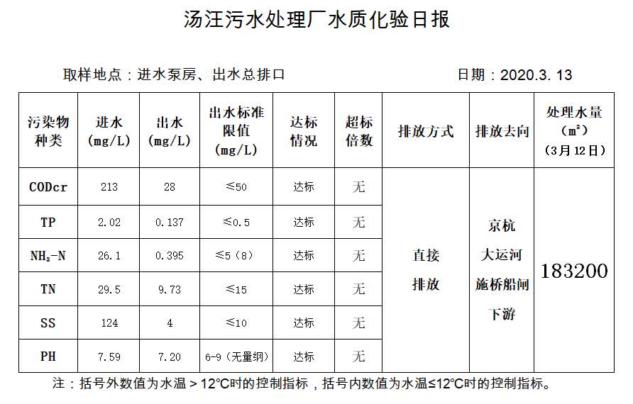 汤汪污水处理厂水质化验日报(2020.3.13)