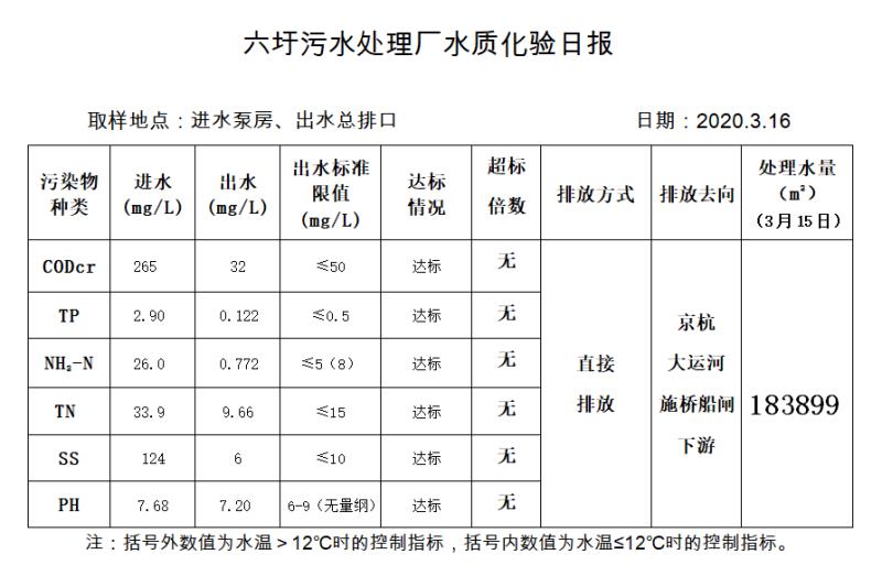 六圩污水处理厂水质化验日报(2020.3.16)