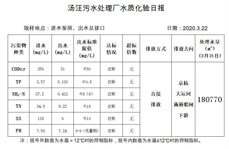 汤汪污水处理厂水质化验日报(2020.3.22)
