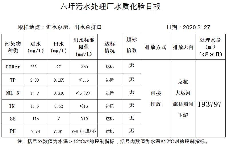 六圩污水处理厂水质化验日报(2020.3.27)