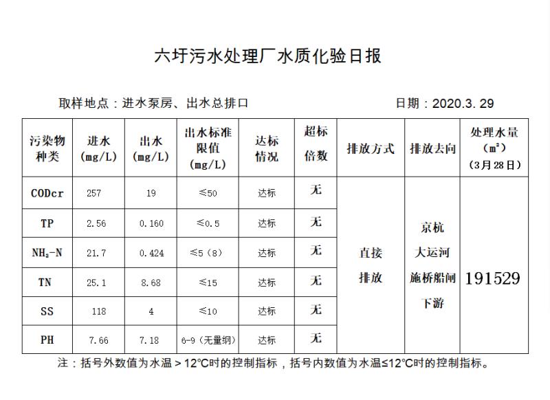 六圩污水处理厂水质化验日报(2020.3.29)