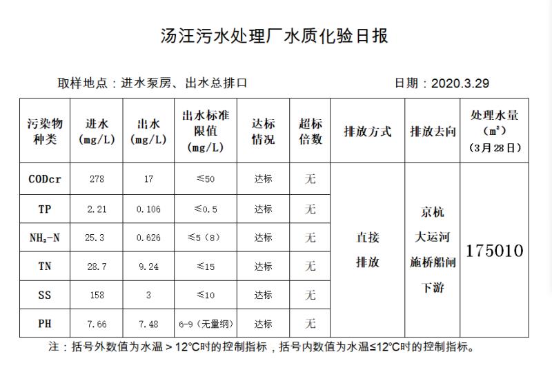 汤汪污水处理厂水质化验日报(2020.3.29)