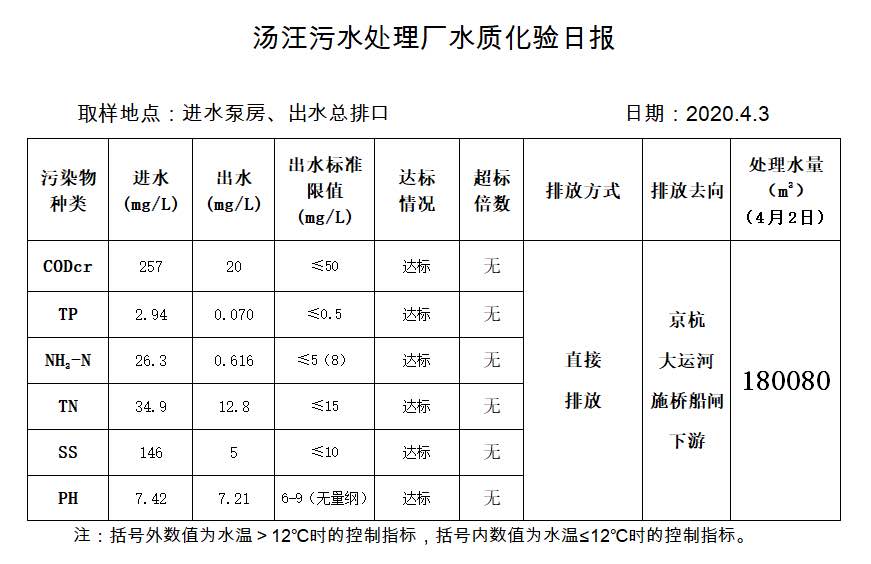 汤汪污水处理厂水质化验日报(2020.4.3)