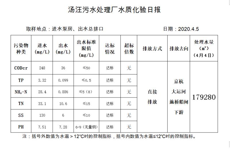 汤汪污水处理厂水质化验日报(2020.4.5)