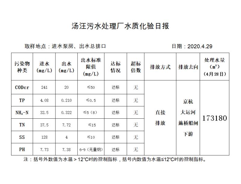 汤汪污水处理厂水质化验日报(2020.4.29)