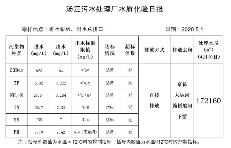 汤汪污水处理厂水质化验日报(2020.5.1)