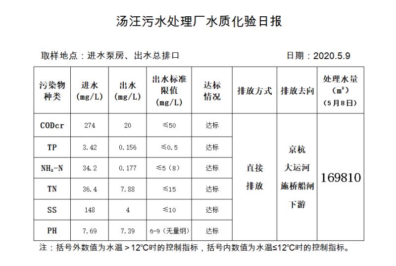 汤汪污水处理厂水质化验日报(2020.5.9)