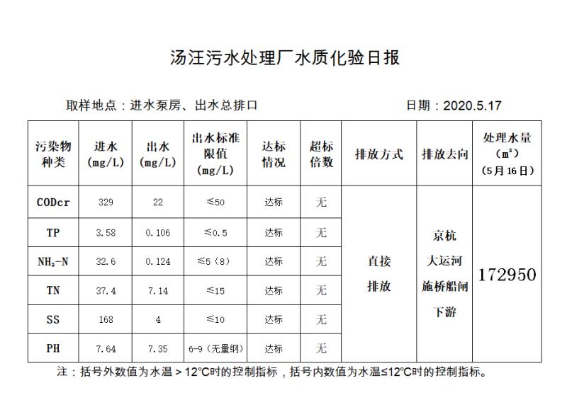 汤汪污水处理厂水质化验日报(2020.5.17)