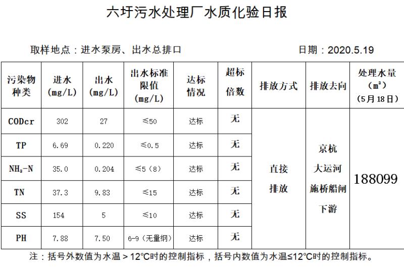 六圩污水处理厂水质化验日报(2020.5.19)
