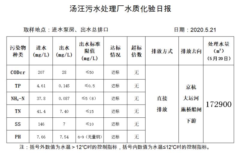 汤汪污水处理厂水质化验日报(2020.5.21)