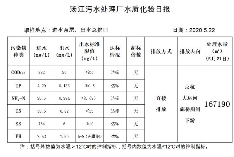 汤汪污水处理厂水质化验日报(2020.5.22)
