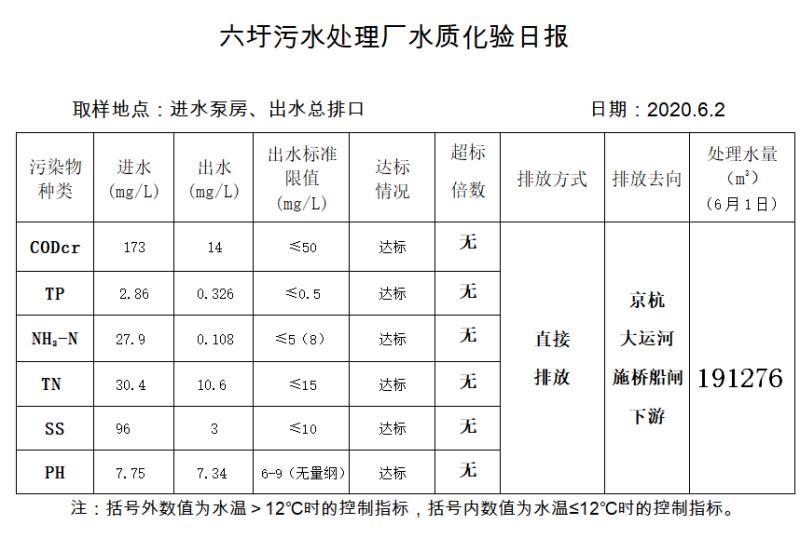六圩污水处理厂水质化验日报(2020.6.2)