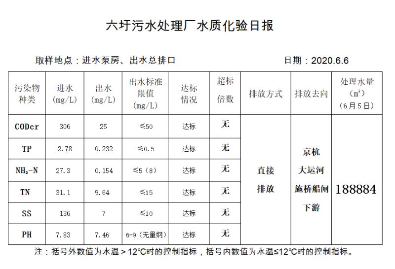 六圩污水处理厂水质化验日报(2020.6.6)