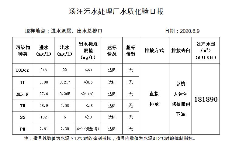 汤汪污水处理厂水质化验日报(2020.6.9)