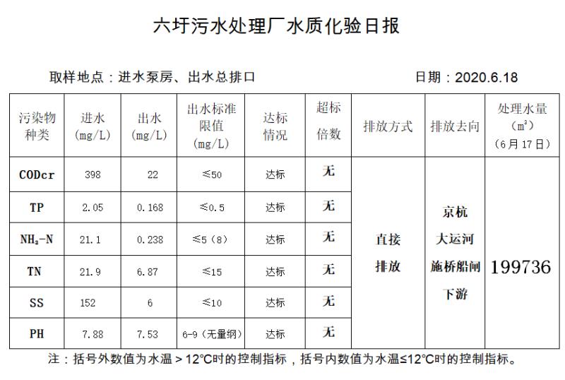 六圩污水处理厂水质化验日报(2020.6.18)