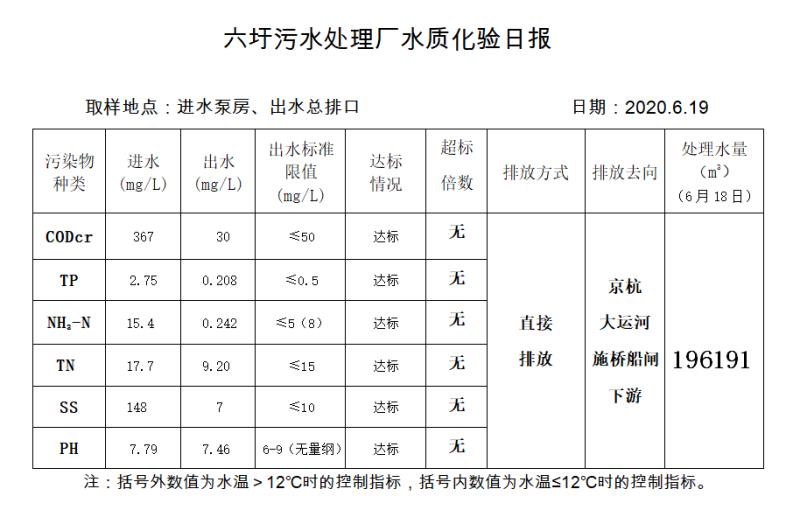 六圩污水处理厂水质化验日报(2020.6.19)