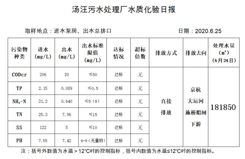 汤汪污水处理厂水质化验日报(2020.6.25)