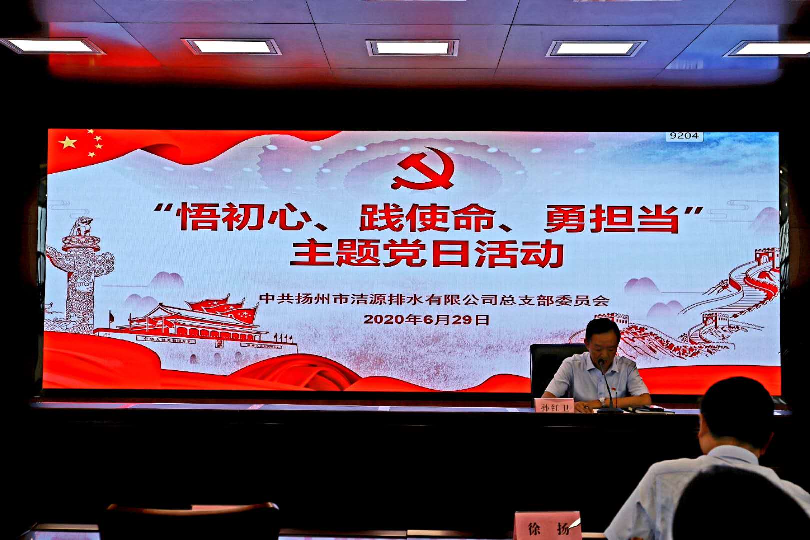 为增强党组织建设,提高公司党员素质,坚定理想信念,根据公司“庆祝建党99周年系列活动”安排,6月29日下午,洁源排水公司党总支组织全体党员干部在公司报告厅开展了“悟初心、践使命、勇担当”主题党日活动。公司领导班子全体成员、全体党员共计约50人参加了活动。