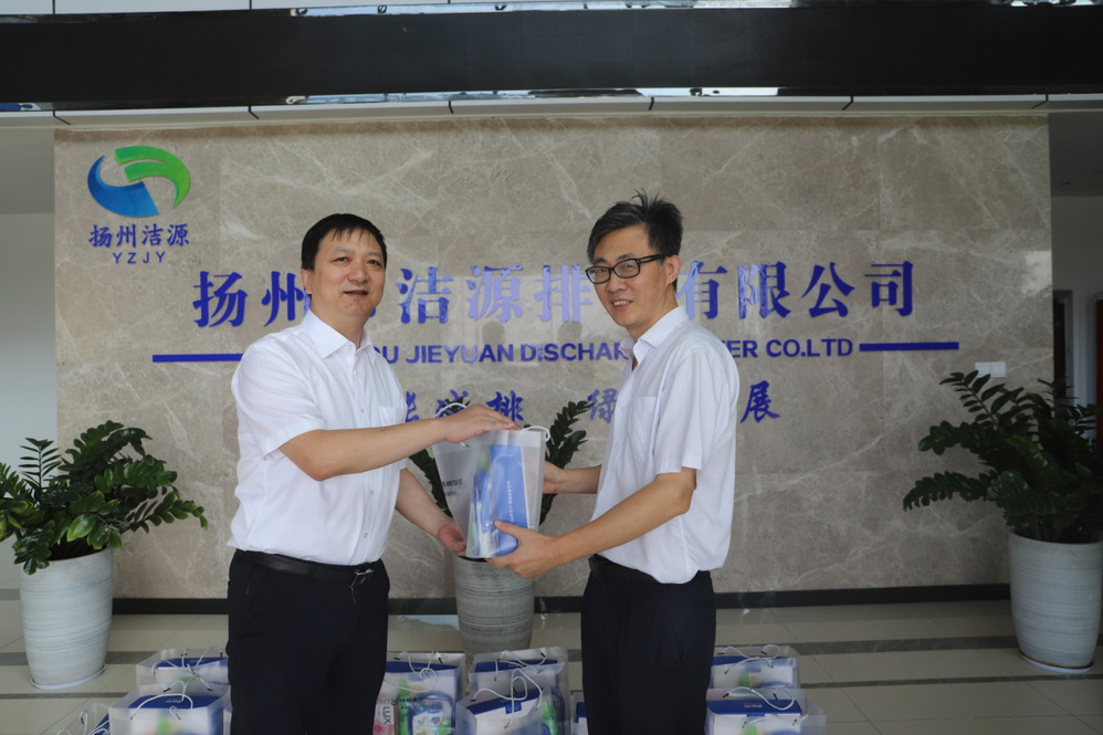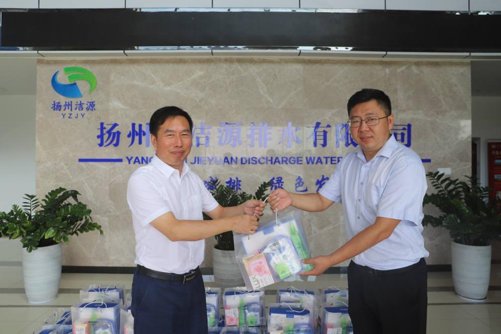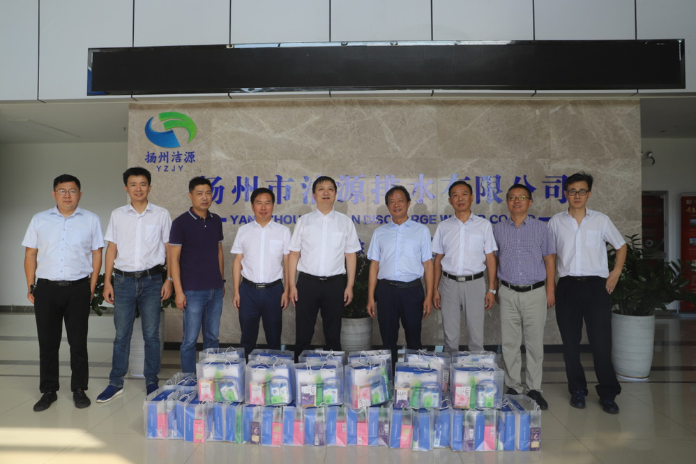 8月19日上午,城控集团总经理夏正东一行来到洁源排水公司开展夏日高温慰问活动,集团党委委员、长江水务股份董事长张正斌、集团办公室相关人员参加慰问。
