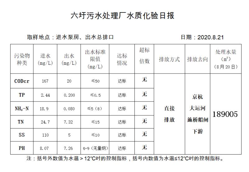 六圩污水处理厂水质化验日报(2020.8.21)
