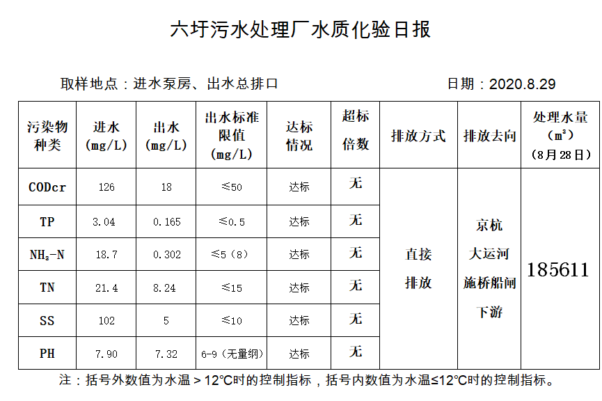 六圩污水处理厂水质化验日报(2020.8.29)