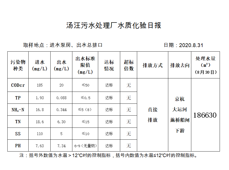 汤汪污水处理厂水质化验日报(2020.8.31)
