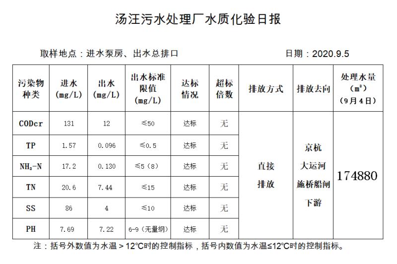汤汪污水处理厂水质化验日报(2020.9.5)