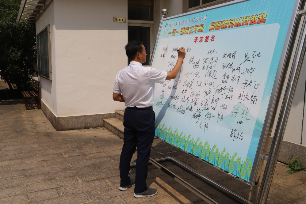 为贯彻落实习近平总书记关于坚决制止餐饮浪费讲话精神,弘扬 “厉行勤俭、节约用餐”的良好风尚,9月8日起,洁源排水公司在职工食堂组织开展了 “一米一粟来之不易、爱惜粮食从我做起”承诺签名活动。