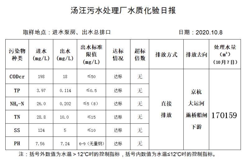 汤汪污水处理厂水质化验日报(2020.10.8)