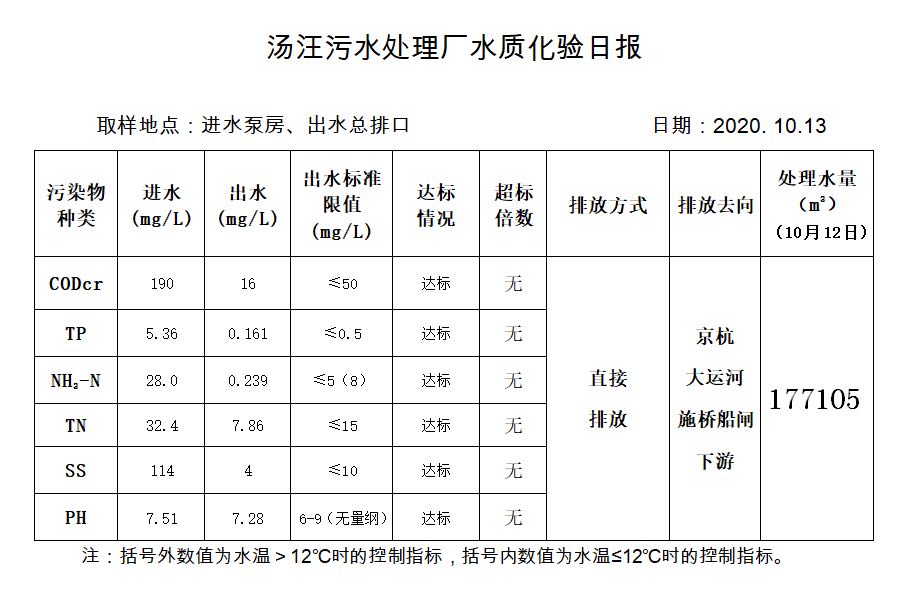 汤汪污水处理厂水质化验日报(2020.10.13)