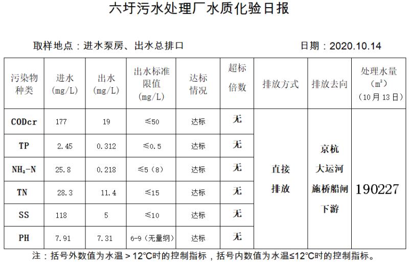 六圩污水处理厂水质化验日报(2020.10.14)