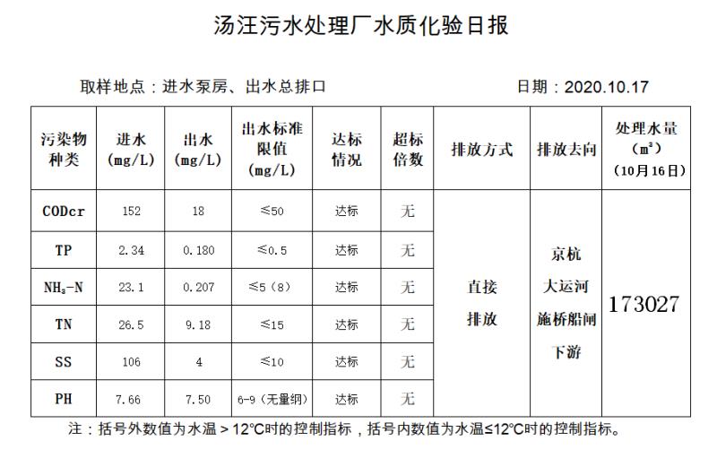 汤汪污水处理厂水质化验日报(2020.10.17)