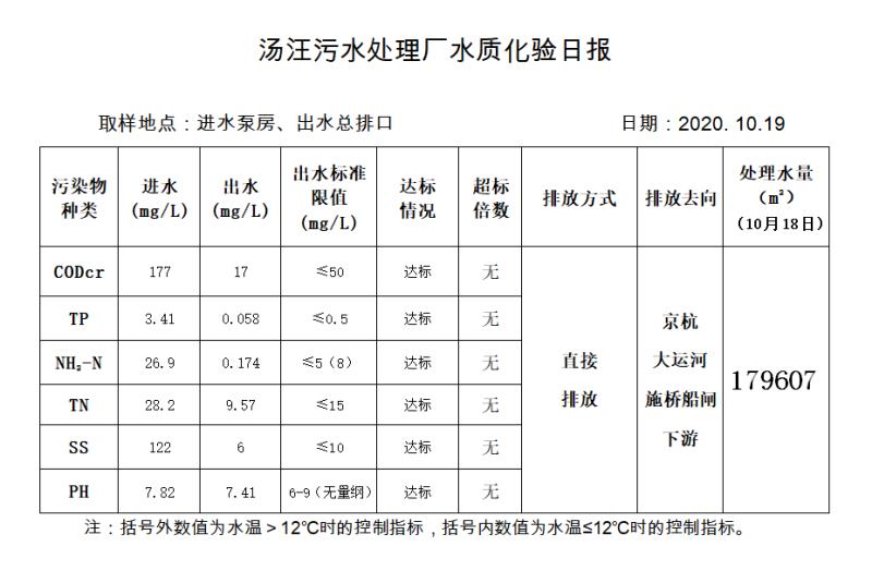汤汪污水处理厂水质化验日报(2020.10.19)