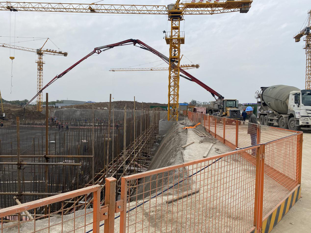10月19日凌晨3点,随着最后一车混凝土出泵,持续运转了13个小时的泵车停止了轰鸣。经过项目部全体成员的共同努力,北山污水处理厂一期工程主体构筑物AAO生化池一号片区底板浇筑工作顺利完成,厂区内主体结构全面施工的第一枪正式打响。