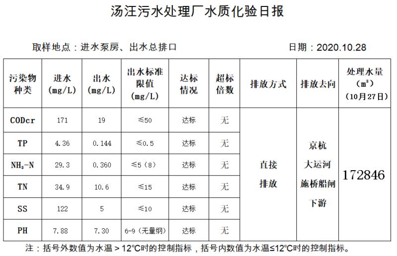 汤汪污水处理厂水质化验日报(2020.10.28)