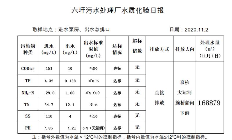 六圩污水处理厂水质化验日报(2020.11.2)