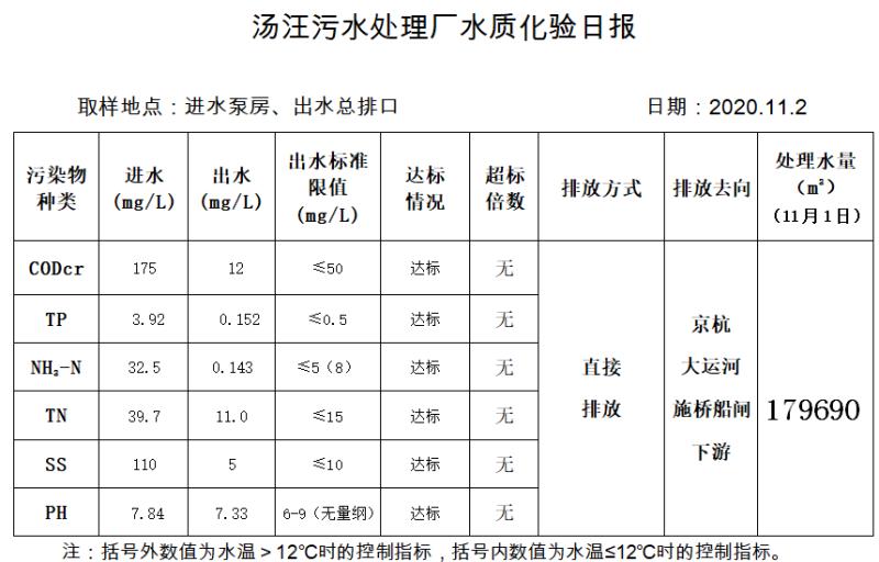 汤汪污水处理厂水质化验日报(2020.11.2)