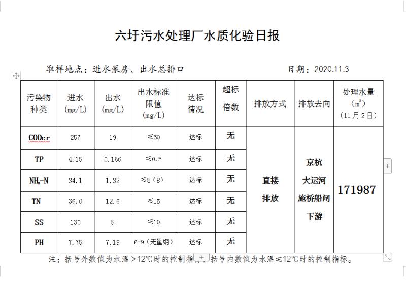 六圩污水处理厂水质化验日报(2020.11.3)