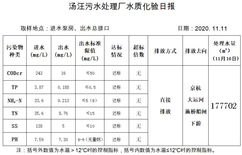 汤汪污水处理厂水质化验日报(2020.11.11)