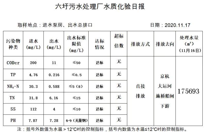六圩污水处理厂水质化验日报(2020.11.17)